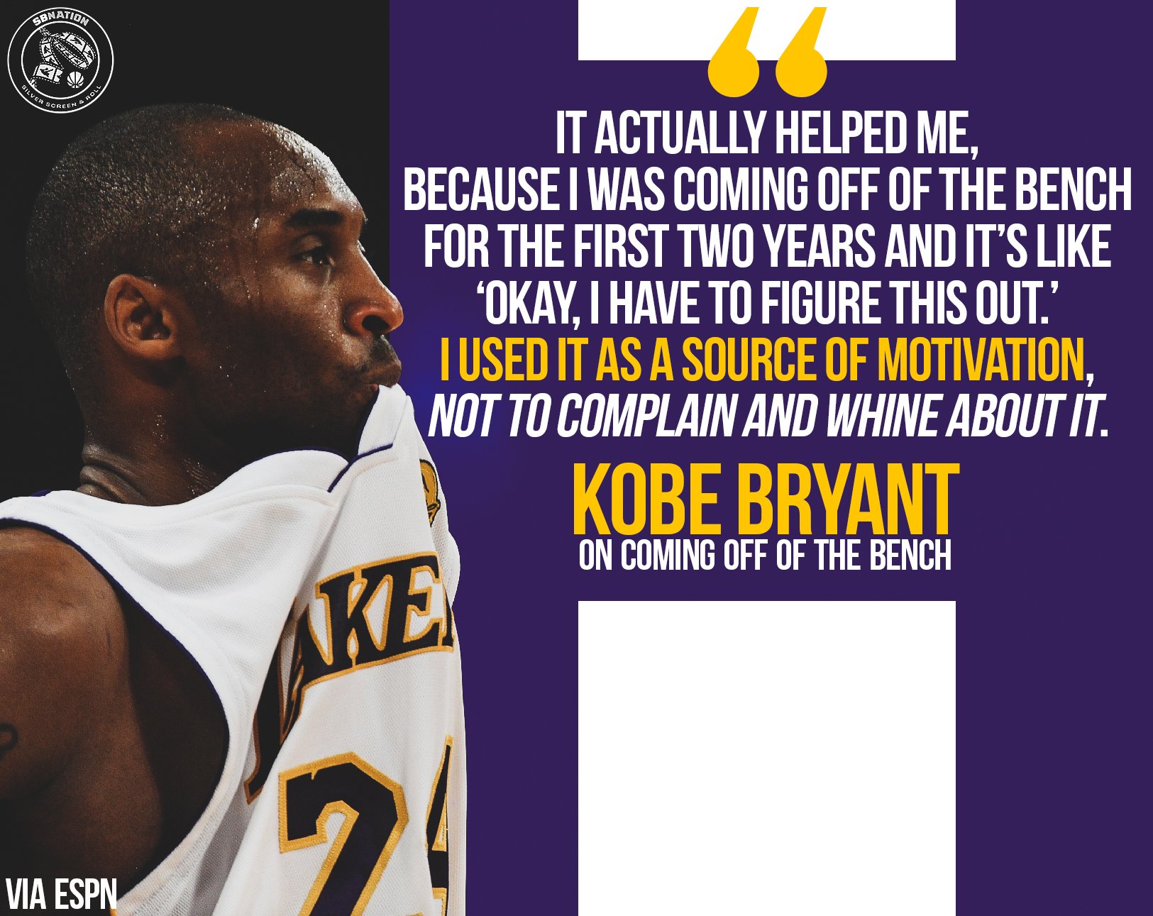 Silver Screen And Roll On Twitter Kobe Bryant Says The Lakers Bringing Him Off The Bench Early In His Career Was Motivation Https T Co 7yduf9mqg3 Https T Co P1h744wq20 Twitter